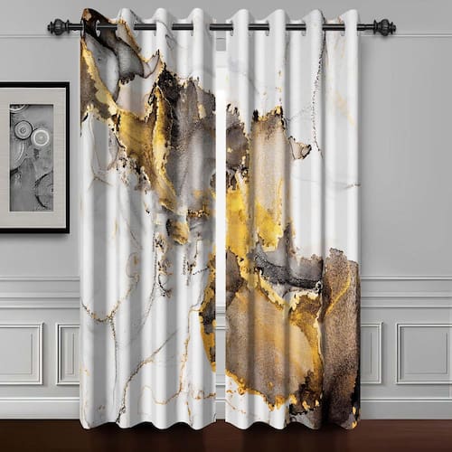 A arruela de aço inoxidável na parte superior do painel tem um diâmetro interno de 4 cm, o que pode atender aos requisitos da maioria das hastes de cortina. É muito adequada para a decoração de salas de estar, quartos e cozinhas. Detalhes da embalagem: Personalização: Também podemos personalizar o tamanho e a cor das cortinas de acordo com suas necessidades. Instruções de cuidados: 1. Feita de 100% poliéster 2. Lavar à máquina ou à mão em baixa temperatura. 3. Não usar alvejante. ? Aviso ? 1. Considere uma diferença de 1 a 2 cm devido à medição manual. 2. Devido à influência da luz e da tela, pode haver pequenas diferenças de cor. 3. Não lave com outros itens ou seque em alta temperatura na máquina. 13. Qualquer dúvida ou problema, não hesite em entrar em contato conosco, sempre faremos o nosso melhor para ajudá-lo. - ?O pacote inclui?Conjunto de 2 painéis de cortina dourada cinza. Cada painel tem ilhós cinza brilhante de 3/4/6/8 com um diâmetro interno de 4 cm. Combina bem com a maioria das hastes de cortina padrão. Sugerimos escolher o tamanho certo depois de medir as janelas - ?Materiais e tecnologia premium?As cortinas de janela cinza preto e dourado são feitas de tecido 100% poliéster de alta qualidade e tecnologia de impressão digital de alta qualidade. Durável. Resistente ao desbotamento. Sem revestimento químico, o que é mais saudável e seguro para as pessoas, especialmente bebês e crianças, verde e proteção ambiental - ?Múltiplas funções?: Estas cortinas de mármore podem proteger a privacidade. Perfeita para quarto, sala de estar, sala de jantar, dormitório, cozinha, banheiro e qualquer espaço que você goste. Também é um dos melhores presentes para sua família, amigos, parentes ou para você mesmo - ?Isolamento térmico?As cortinas cinza e douradas podem impedir 92% da luz e dos raios UV. Redução de ruído e pode isolar a sala contra energia térmica externa no verão. Perfeita para quem dorme tarde e cochilos à tarde - Instruções de cuidados: as cortinas de mármore escurecidas Baocicco podem ser lavadas em água fria e passadas a ferro em baixa temperatura. Não use alvejante e não use ferro seco