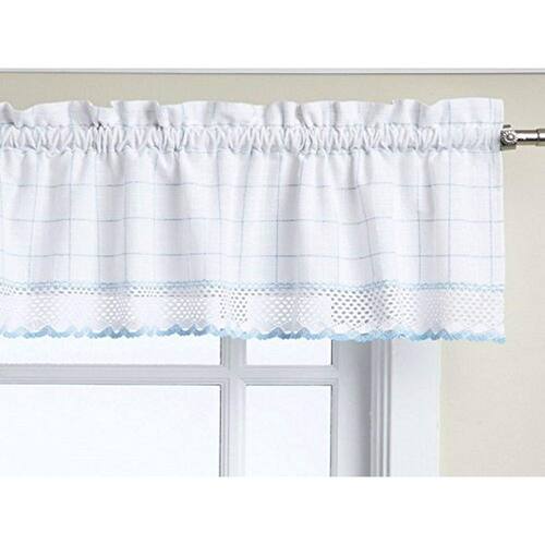 Sweet Home Collection Par de cortinas de janela de cozinha Adirondack de algodão, sanefa, branca/azul - Cor: Branco/Azul - Padrão: painel de janela clássico - Estilo da cortina: saia - Construção: 1,5 bolso de haste - Material: 100% algodão