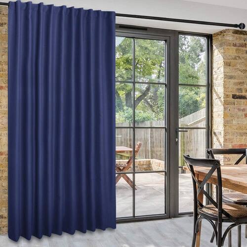 DWCN Cortinas de porta deslizante de pátio – Cortinas extra largas para porta de vidro, painel de cortina térmica blackout com aba traseira e bolso para varão para divisória de quarto, 203 x 213 cm, - O pacote inclui: 1 painel de cortina divisória azul marinho de 203 cm de largura x 213 cm de altura. Cada painel tem bolso para haste de 8 cm e laços de aba traseira, que podem ser pendurados em diferentes estilos: Slot Top, laços traseiros ou com seus próprios anéis de clipe. (Os painéis são da mesma cor em ambos os lados) - Tecido blackout pesado: estas cortinas extra largas são feitas de tecido de poliéster trançado triplo 100% durável de alta qualidade. Nossas cortinas divisórias de quarto podem bloquear 80% a 90% da luz solar UV sem forro (as cores mais escuras funcionam melhor) e isolam termicamente contra calor e frio extremos. - Cortina de privacidade total e redução de ruído: nossas cortinas térmicas de privacidade pesadas ajudam a reduzir o ruído e fornecem proteção total de privacidade contra visualizações indesejadas e espectadores a qualquer hora do dia. Como regra geral, os painéis de volume adequados devem medir de 2 a 3 vezes a largura da janela/abertura. - Solução de divisão de espaço: Com uma largura extra ampla, estas cortinas são projetadas para divisão e gerenciamento de salas. Eles podem ser utilizados em portas deslizantes de pátio, janelas grandes, quarto compartilhado, apartamento, armazenamento, estúdio, dormitórios, loft, espaço de trabalho de escritório, tetos altos, fábricas, hospitais, cafés e hotéis. - Tecido fácil de cuidar: nossas cortinas divisórias de escurecimento de ambiente são laváveis na máquina em água fria, ciclo suave, sem branqueamento, ferro a baixa temperatura se necessário, sem desbotamento de cor garantido. (varão de cortina não incluído)
