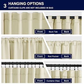 As cortinas blackout Hiasan Rod Edição de Bolso e Back Tab com 2 prendedores ajudam a manter suas cortinas abertas com o mínimo de esforço. Você pode reduzir despesas extras para seus tratamentos de janela. Para amarrar as duas extremidades dos prendedores e depois ajustá-lo de acordo com a espessura da sua cortina. Estas cortinas blackout pesadas oferecem uma solução contemporânea para segurar cortinas sem a necessidade de ferramentas ou perfurar furos no acabamento ou nas paredes. Características: Bloqueia 85%-170% da luz solar e dos raios UV Isolamento térmico e redução de ruído Proteção espessa e de privacidade Disponível em vários tamanhos e cores Quanto mais escura a cor, melhor o desempenho do blecaute Fácil de cuidar: Lavar à máquina em água fria. Secar em temperatura baixa. Passar a ferro a baixa Não usar alvejante - Informações básicas: Seu pacote inclui um conjunto de 2 painéis de cortina. Cada painel mede 52 W por 45 L polegadas com 3 estilos de pendurar para escolher: laços traseiros, bolso para haste ou com seus próprios anéis de clipe - Design especial: Swen com 2 laços em ambos os lados da cortina, você pode apertar ou desatar as cortinas para controlar a luz de acordo com sua preferência e você não precisa gastar dinheiro em laços extras de cortina - Efeito blackout: estas cortinas blackout podem reduzir e bloquear 85%-98% da luz solar (as cortinas de cor escura funcionam melhor), equilibrar a temperatura interna e externa e proporcionar uma boa noite de sono ou um bom ambiente de descanso - Conforto: essas cortinas térmicas são eficazes para evitar tanto o frio no inverno quanto o calor no verão, enquanto protegem seus móveis da luz UV prejudicial. Perfeito para sala de estar, berçário, quarto, hotel e mais - Instruções de cuidados: Lavável na máquina em água fria, ciclo delicado, secar em temperatura baixa, não usar alvejante, passar a ferro em baixa temperatura, se necessário. Meça o tamanho do mastro e da janela antes de escolher as cortinas. com qualquer problema