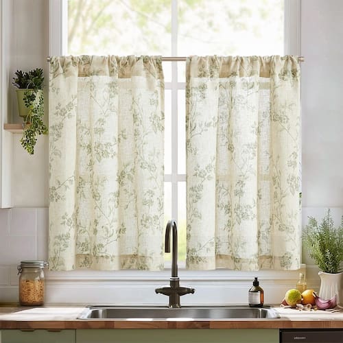 Descubra o charme da primavera com nossa cortina de cozinha floral jinchan - o destaque perfeito para elevar a decoração da sua casa! Cortinas de flor de primavera para janelas: Disponível em dois painéis medindo 66 cm de largura e 61 cm de comprimento, nossas cortinas de camada apresentam um bolso de mastro de 7,6 cm, compatível com hastes de cortina padrão ou extensão. Escolha entre quatro cores atemporais em tons de terra. Tratamento botânico para janelas: Adornadas com uma estampa botânica chique, estas pequenas cortinas de linho trazem a essência da primavera para dentro de casa, infundindo seu espaço com uma natureza fresca e um toque rústico. Painel de fliteragem leve: feitas de linho macio, nossas cortinas de café podem filtrar a luz solar mais intensa, criando um ambiente suave enquanto fornece privacidade para a janela da sua cozinha. Enfeite de janela multiuso: eleve sua área de jantar com nossos tratamentos de janela cuidadosamente projetados. Perfeita para cozinhas, salas de estar, quartos, banheiros, lavanderias, salas de jogos e porões, elas complementam vários estilos de interiores, incluindo rústico, vintage, moderno, campo, casa de campo e casa de fazenda. Manutenção sem esforço: Construídas a partir de tecido de mistura de linho durável, nossas cortinas country são laváveis na máquina em água fria em um ciclo suave e podem ser secas na máquina em temperatura baixa. Evite alvejante. Qualquer vinco de embalagem pode ser facilmente alisado com um ferro ou sistema de vaporização. - Ajuste perfeito e fácil instalação – Este conjunto inclui duas cortinas florais de cozinha, cada uma medindo 66 cm L x 61 cm C. Projetado com um bolso de mastro de 7,6 cm, estas cortinas de janela de cozinha deslizam facilmente em hastes de tensão ou hastes padrão (diâmetro recomendado de 3,8 cm ou menos), tornando a instalação fácil.
