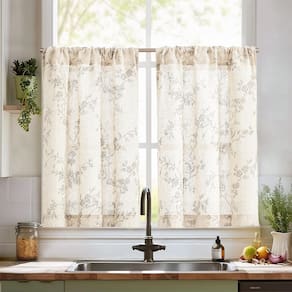 Cortinas Spring Blossom para Windows: disponíveis em dois painéis medindo 26 polegadas de largura e 24 polegadas de comprimento, nossas cortinas de nível apresentam um bolso de 3 polegadas, compatível com hastes de cortina padrão ou de extensão. Escolha entre quatro cores atemporais em tons de terra.
