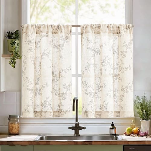 - Ajuste perfeito e fácil instalação — Este conjunto inclui duas cortinas florais de cozinha, cada uma medindo cortinas de 26" L x 24" L com um bolso de 3 polegadas. Adapta-se a hastes de tensão ou padrão (1,5" de diâmetro ou menos) para uma configuração fácil.