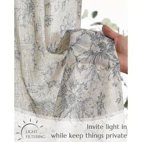 A cortina de linho com estampa floral CKNY HOME FASHION é uma ótima maneira de enfeitar suas janelas! Bem feita: Cortinas de todos os tamanhos se encaixam facilmente com hastes de cortina padrão. algumas cores diferentes para combinar com a decoração da sua casa. Tecido texturizado de mistura de linho e poliéster durável. Desempenho: Design retrô combinado com os benefícios de reduzir a luz externa e fornecer privacidade. Aproveite o seu programa favorito sem brilho na tela. Estampa floral e design botânico com suas linhas visualmente limpas dão à cortina um visual rústico e vintage. Adequado para cozinha, escritório, quarto, sala de estar e muito mais, para uma proteção de privacidade. Fácil de cuidar: A cortina é feita para durar. Lavável na máquina em água fria, ciclo delicado, secar na secadora. Passar a ferro frio se necessário. Sobre nós Encontre CKNY HOME FASHION, vários estilos de camadas, cortinas blackout, cortinas transparentes e cortinas de camadas para mais opções." - Pronto: este conjunto inclui 2 cortinas de amarrar de mistura de linho, cada uma medindo 66 cm L x 61 cm C, para uma cobertura total de 137 cm L x 61 cm C. As abas superiores de 7,6 cm estão incluídas no comprimento e deslizam facilmente em hastes de até 3,8 cm de diâmetro, facilitando a instalação