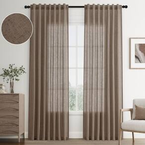 Cortinas de linho com aba traseira - Mistura de linho natural e extramacia: feitas de uma mistura de linho natural e tecido de poliéster, nossas cortinas de janela exibem uma aparência delicada e natural e uma vibração confortável e aconchegante. A superfície texturizada de linho adiciona fascínio visual e um toque de elegância - 3 opções de suspensão: 1. Use abas traseiras para obter uma sensação casual moderna; 2. Use o bolso da haste para um visual clássico; 3. Use anéis de clipe para facilitar o deslizamento (clipes e anéis não estão incluídos). - Pacotes: Conjunto de 2 painéis em 1 pacote. Cada painel mede 132 cm de largura por 213 cm de comprimento, total de 264 cm de largura. Disponível em e comprimentos, nossas cortinas de linho se adaptam sem esforço às suas preferências de decoração neutra, você pode facilmente misturar essas cortinas de linho com o seu enfeite de janela existente na sala de estar e cozinha. quarto, banheiro, lavanderia, pátio, palitinho, marquise, sala de teto alto ao chão, escritório em casa, etc - Luz solar suave e privacidade: Brilho suavemente difuso e a quantidade certa de luz solar intensa, permitindo que uma brisa suave permeie seu espaço, cortinas de linho em tons neutros garantem um grau de privacidade. O tecido semitransparente protege a visão interna, permitindo que você aproveite seu espaço enquanto protege seus momentos privados do escrutínio externo - Manutenção sem esforço e estilo atemporal: lave facilmente em água fria, seque em temperatura baixa e passe a ferro na configuração mais suave, se necessário.