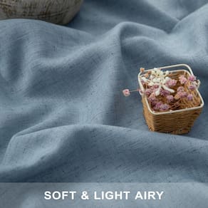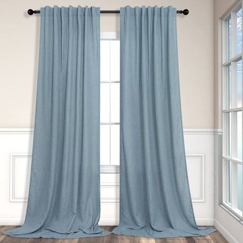 Cortinas de linho azul de 203 cm de comprimento para sala de estar, conjunto de 2 painéis, aba traseira, bolso de haste, filtro de luz, semitransparente, cinza, cortinas azuis semitransparentes, para - Informações básicas: 2 painéis de linho em 1 pacote. Cada painel mede largura 52 x 84 comprimento. Opções de suspensão em 3 vias: pendure estes painéis de cortina (1) usando os laços traseiros para criar um efeito plissado elegante, (2) no bolso da haste de 7,6 cm para um visual clássico, ou (3) usando anéis de clipe para facilitar a abertura e fechamento (anéis de clipe não incluídos) - Filtro de luz semitransparente: ao contrário das cortinas transparentes comuns, a textura do tecido não é muito transparente, mas espessa e opaca o suficiente para criar uma visão semitransparente, mas permite que a luz natural suficiente flua para uma sala durante o dia - Tecido de mistura de linho macio: O tecido rico de linho misturado com poliéster apresenta um tom de linho neutro, efeito primitivo e natural torna os painéis mais drapeados e estéticos. Sensação de toque macio premium nessas elegantes cortinas de mistura de linho, adicione um charme refrescante à sua janela - Leve e arejada: feitas de tecido de linho de trama aberta, essas cortinas leves equilibram bem a luz e a privacidade, criam um espaço arejado e respirável para o seu quarto. A textura de padrão casual e simples é perfeita para uma casa de fazenda rústica moderna, country chique, rústico, praia costeira ou estilo clássico de quarto tradicional - Fácil de cuidar: lavável na máquina em água fria, não usar alvejante, secar em temperatura baixa, passar na configuração mais baixa, se necessário. Fácil de usar. Dicas: o comprimento da bainha inferior das cortinas de 96,5 cm de largura é de 1,3 cm de comprimento; o comprimento da bainha inferior de 132 cm de largura é de 5 cm de comprimento