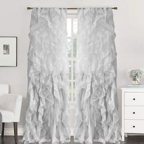- O painel de estilo chique apresenta material de poliéster e um padrão sólido com babados verticais