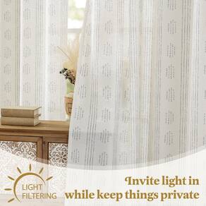 Cortinas de linho com 2 painéis, cortinas de janela com proteção de privacidade Detalhes do produto: Multicor: Cortinas Boho - Várias funções: ?Estes tratamentos de janela transparentes vibrantes podem ajudar a filtrar o brilho e suavizar a luz solar, enquanto deixa o ar fresco em todos os cômodos. ? Estampa Boho nessas cortinas transparentes listradas decoram suas janelas com um estilo fantástico. Os painéis de cortina transparentes são perfeitos para sala de estar, quarto, sala de jantar etc. Dicas: ? Pode haver algum erro devido às medidas manuais, por favor, entenda. ? Verifique o tamanho antes de comprar. - Cortinas Boêmio: Enfeitadas com padrões listrados delicadamente geométricos, essas cortinas de tecido de lama de mistura de linho trazem um toque de feminilidade e romance ao seu espaço. O pacote inclui 2 painéis de 132 cm de largura por 243 cm de comprimento cada, 104 por 96 combinados - Cortinas Farmhouse Country: Estes painéis de cortina estampados apresentam um design geométrico em tecido de mistura de linho macio e durável. Adicionando um toque de elegância e sofisticação a qualquer espaço. Complementando uma ampla variedade de estilos de interiores, como boêmio, casa de fazenda, country e contemporâneo moderno. - Filtragem de luz e privacidade: Projetado com lindas listras boêmias, esses painéis de cortina de linho alcançam um equilíbrio perfeito entre funcionalidade e estética, em um efeito suave e nebuloso. Elas fornecem privacidade suficiente de pessoas de fora enquanto permitem a entrada de luz suficiente e mantêm o brilho interno - Opção de suspensão: Estas elegantes cortinas de janela com ilhós de 4 cm de diâmetro interno podem funcionar facilmente com a maioria das hastes de cortina regulares. A parte superior prateada com ilhós é fácil de instalar e suave para desenhar. - Fácil de cuidar: nossas cortinas texturizadas de linho são duráveis e duradouras, com tecido resistente e costura de alta qualidade. Elas podem suportar lavagem na máquina em água fria e secar na máquina em temperatura suave, sem alvejante. O armazenamento pode causar vincos que podem ser removidos passando a ferro e vaporizando