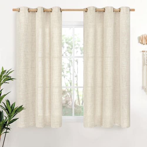 Adicione um toque de elegância discreta à sua casa com as cortinas de linho YoungsTex natural. Feitas de tecido espesso de mistura de linho, com um toque macio premium, excelente drapeado e sem rugas, essas cortinas texturizadas de aniagem equilibram sutilmente a luz e a privacidade, permitem a entrada de uma bela luz difusa que proporciona um brilho quente enquanto protege sua privacidade. Oferece um espaço de vida confortável. Seja qual for o estilo moderno de casa de fazenda ou decoração tradicional, esta cortina texturizada de linho sempre impressiona muito. - Pacote: O pacote inclui um conjunto de 2 painéis de cortina de linho. Cada cortina texturizada de linho mede 107 cm de largura e 137 cm de comprimento. Cada cortina de filtro de luz tem 6 ilhós de bronze vintage com diâmetro interno de 4 cm, se encaixa bem na maioria das hastes. Fácil de pendurar e deslizar suavemente. - Aparência de linho texturizado: nossas cortinas de linho falso são feitas de tecido de mistura de linho com um toque macio premium, excelente drapeado e sem rugas. Visual natural e rústico que adiciona calor e textura a qualquer cômodo, adequado para sala de estar, quarto, casa de fazenda, sala de jantar, escritório e qualquer espaço de estilo. - Filtragem de luz: Estas cortinas grossas de linho oferecem a quantidade certa de filtragem de luz e permitem a entrada de uma bela luz difusa que reduz o brilho, também permite que o ar fresco flua, criando uma sensação arejada, proporcionando a você um espaço aconchegante. - Proteção de privacidade: Diferente das cortinas transparentes comuns, nossas cortinas grossas de linho são tecidas com uma textura mais firme e espessa que bloqueia a luz forte, enquanto a boa espessura ajuda a fornecer privacidade. Equilibra sutilmente luz e privacidade que permite que você aproveite seu tempo de lazer. - Dicas: Nossa largura da cortina é plana para cada painel antes de pendurar, a largura real da cobertura é menor. Escolha a largura total da cortina plana pelo menos 1,5 a 2 vezes mais larga do que a janela para uma cobertura perfeita. Meça o comprimento e a altura da janela ou com antecedência para ajudá-lo a comprar o produto certo.