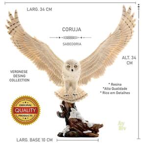 Coruja branca sabedoria conhecimento veronese resina 34 cm