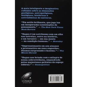 Aqui, o tratamento dos temas científicos está sempre imbricado com outros campos de estudo tradicionais, como história, antropologia, arte e filosofia. Publicado pela primeira vez em 1980, Cosmos reúne alguns dos conhecimentos mais avançados da época sobre a natureza, a vida e o Universo — e se mantém até hoje como uma das mais importantes obras de divulgação científica da história. Embora diversas descobertas fascinantes tenham ocorrido nos últimos quarenta anos, o tema central deste livro nunca estará desatualizado: nosso fascínio pelo conhecimento e a prática da ciência como atividade cultural.