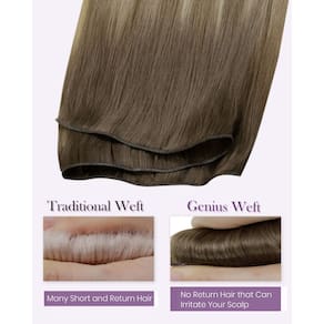 - Se você está procurando extensões de cabelo avançadas: as extensões de cabelo LaaVoo Genius Weft são feitas usando técnicas e tecnologias avançadas de poliuretano exclusivas que são macias ao toque sem fios de costura. Eles são amarrados à mão em uma trama fina