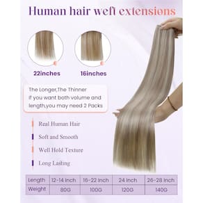 Extensões de cabelo de costura LaaVoo aprimoradas, cabelo humano real! Por que você precisa de extensões de cabelo humano de trama? ?A trama do cabelo humano é segura e versátil para lidar com baixa densidade ou para fazer uma peruca completa ou para adicionar comprimento/volume. ?Estas extensões de trama de cabelo ombre/balayage são as mais razoáveis para obter uma combinação de cor perfeita sem danificar seu próprio cabelo. ?Se você é um usuário de extensão ou cosmetologista, você deve ter passado por cabelos caros ou fora da marca. E a marca "LaaVoo" traz a você extensões de trama de cabelo de qualidade e acessíveis. ?As extensões de trama de cabelo costuradas não contêm nenhuma peça de fixação, você pode costurar, colocar micro ligação, prender ou colar como quiser. ?Normalmente, 2-3 conjuntos são suficientes para uma cabeça inteira. Especificações: Material do cabelo: Cabelo humano real Textura do cabelo: Liso natural Cor do cabelo: Mais de 10 cores disponíveis Comprimento do cabelo: 30-61 cm Peso do cabelo: (40,6 cm/45,7 cm): 50 gramas/feixe; (50,8 cm): 60 gramas/feixe; (/56 cm/61 cm): 80 gramas/pacote Vida útil do cabelo: Depende muito de como eles foram utilizados e cuidados Como lavar e costurar extensões de cabelo de trama? Penteie as extensões de cabelo antes de lavar. Lave as extensões de cabelo em água morna suavemente, use um pouco de xampu suave e condicionador sem sulfato. Segure suavemente as extensões de cabelo e esprema a água, depois seque as extensões de cabelo com uma toalha e deixe secar naturalmente. - [Motivo para escolher um cabelo de trama] Talvez você esteja procurando uma extensão de cabelo que possa ser usada por um longo tempo? LaaVoo Weft Hair é o que você quer! Nós nos dedicamos a extensões de cabelo humano real por muitos anos. Usando cabelo humano real remy como material e tecnologia de tingimento excelente e avançada, o LaaVoo Weft Hair é macio e suave e mistura exatamente como o seu próprio cabelo. Pode ser amarrado firmemente ao seu cabelo e inspirar sua criatividade infinita em seu estilo de cabelo. - [Como evitar queda ou emaranhamento? ] Como o cabelo humano de trama LaaVoo é feito de cabelo humano remy e descolorido em bonitas, ele não tem produção em escala, mas seu cabelo sim. Esta é a razão pela qual eles caem após a lavagem - seu cabelo arranha as extensões com escamas. Portanto, antes de lavar, escove suavemente o cabelo com um pente de dentes largos, use xampu suave e condicionador sem sulfato e óleo e máscara capilar pelo menos uma ou duas vezes por semana. - [Várias maneiras de aplicar e fazer você mesmo] O cabelo de trama LaaVoo pode ser aplicado de diferentes maneiras. Pode ser costurado diretamente, com clipe ou micro miçangas. Mas a cola não é recomendada porque pode ser prejudicial ao seu cabelo. Pode ser cortado em qualquer largura que você quiser para atender às suas necessidades especiais de bricolage. No entanto, como as extensões de cabelo de trama devem ser cortadas para serem usadas, preste muita atenção à costura na incisão, para que o cabelo não caia. - [Especificação especial do produto] As extensões de cabelo LaaVoo Sew in Hair têm tramas de 66 cm e 71 cm de 140 g, especialmente para aqueles que querem cabelos mais longos. Também temos 80 g para 12 a 14 polegadas, 100 g para 16 a 22 polegadas e 120 g para 61 cm. Eles têm cerca de 101,6 a 127 cm de largura. Tramas duplas fornecem robustez e durabilidade e são populares entre cabeleireiros profissionais. Se você quiser adicionar volume ao seu cabelo com extensões de cabelo de trama acima de 61 cm, talvez seja necessário comprar dois pacotes. - [Atende às suas necessidades especiais] O cabelo de trama LaaVoo tem bonitas de efeitos diferentes que definitivamente combinam com a cor do seu cabelo. Pode ser enrolado ou estilizado abaixo de 180 °C e tingido em cores mais escuras, mas não descolorido em cores mais claras. Diferenças de cor podem ocorrer ocasionalmente devido a fatores de exibição e luz. Se ainda estiver confuso sobre a cor, nossas equipes de correspondência de cores e personalizadas estão aqui para ajudá-lo.