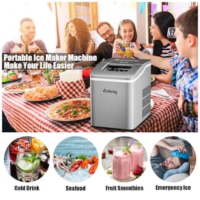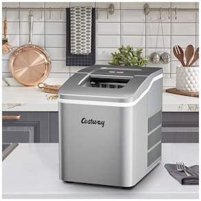 Máquina de fazer gelo eficiente Apresentando função rápida e eficiente, esta máquina de fazer gelo portátil gasta apenas 8 minutos fazendo 9 peças de gelo em forma de bala deliciosos e mastigáveis, economizando seu tempo para fazer comidas e bebidas deliciosas. E pode produzir 11 kg de gelo por dia para fornecer gelo suficiente para você. Painel de controle simples Equipado com painel de controle fácil e tampa transparente, esta máquina de fazer gelo compacta não só oferece a função de autolimpeza, que oferece grande comodidade para você, mas também permite que você verifique o andamento. Observe que a luz do verde é diferente dos outros três produtos. Operação silenciosa Vindo com refrigerante R600a e operação de baixo ruído de 45 dB, esta máquina de fazer gelo elétrica não atrapalhará seu trabalho e atividades diárias, ao mesmo tempo em que atinge baixo consumo. E os evaporadores são feitos de cobre puro com revestimento altamente eficiente e durável. Design portátil e compacto Medindo 30 x 22 x C x L x A de dimensão, esta máquina de fazer gelo de bancada com cabo de alimentação de é adequada para casa, escritório, festa e bar, saboreando comida deliciosa em qualquer lugar. E o design portátil e compacto permite que você carregue e zene com facilidade. Acessórios Doces Este fabricante de gelo premium inclui uma colher de gelo e uma cesta removível, permitindo que você retire o gelo facilmente. E a certificação ETL garante sua segurança. Além disso, as almofadas para os pés antiderrapantes fornecem grande estabilidade Marca: Não Informado
