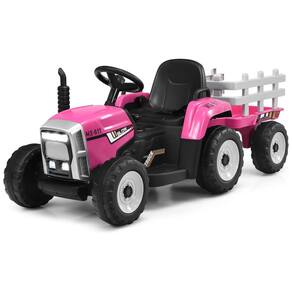 Costzon Trator Elétrico 1 Assento 12V, com Luzes de LED, Rosa