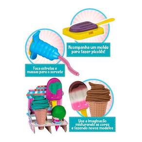 Acompanha moldes e acessórios para criar diferentes tipos de sorvetes.