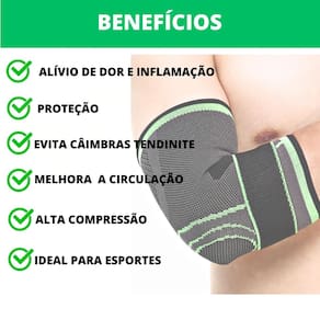 - Prevenção e tratamento de lesões e contusões agudas ou crônicas que necessitam de apoio compressivo como: tendinite, epicondilite, epitrocleite, (lesão por esforço repetitivo), D.O.R.T.S. (distúrbio osteomuscular relacionado ao trabalho), processos inflamatórios, pode ser utilizada na pratica de exercícios físicos e auxilia no tratamento fisioterapêutico. CONSULTE UM ESPECIALISTA.