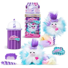 Prepare-se para se apaixonar pelos Cotton Candykins! Essas pelúcias fofinhas e cheirosas de algodão doce vão conquistar seu coração Com cabelos coloridos e macios, eles são perfeitos para você criar e personalizar Cada cápsula esconde uma surpresa deliciosa: um novo amiguinho esperando para ser descoberto e estilizado Colecione todos os 6 personagens surpresa e construa um mundo mágico e doce!