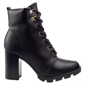 Coturno Beira Rio Salto Alto Solado Tratorado Feminino Preto. Confeccionado em material sintético (napa) por completo, de ótima qualidade e durabilidade, detalhe no cano em tecido strech canelado e solado tratorado. O modelo possui forração em tecido, para assim manter seus pés quentinhos no inverno, palmilha em PU com espuma dupla para melhor conforto. Possui fechamento em cadarço, para melhor calce e ajuste aos pés. Cano médio com detalhe em tecido, de fácil combinação com looks. Solado em PVC tratorado antiderrapante, dando um charme a mais para a peça. Bico redondo. Salto quadrado em 9,0 cm de altura, somente para conforto. Garanta já!