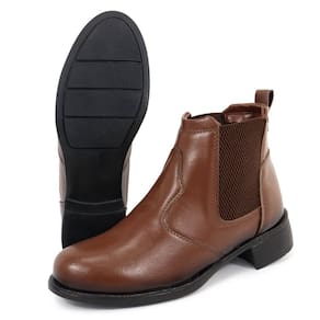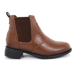 Coturno Bota Feminino Couro Marrom Claro Chelsea Elástico - 35 - Marrom