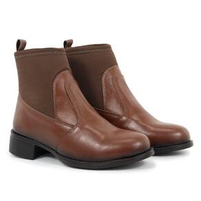 Coturno Bota Feminino Couro Preto Neoprene Salto Confortável - 37 - Marrom