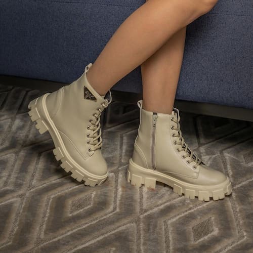 Fabricado com material de alta qualidade, resistente e maleável, este coturno é projetado para garantir uma longa vida útil. Sua palmilha espumada proporciona conforto, permitindo que você use o calçado por horas a fio com facilidade. Com um prático zíper lateral e cadarço para um ajuste seguro, calçar este coturno é simples e rápido.