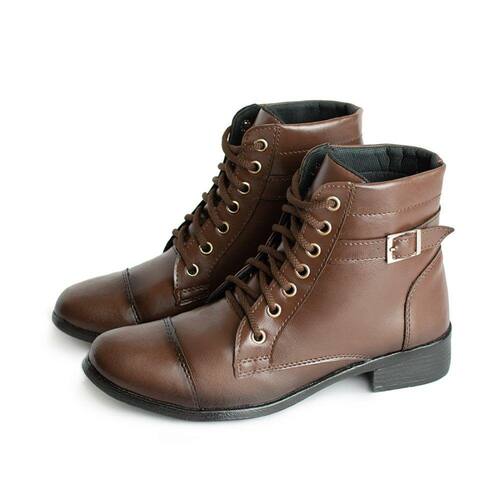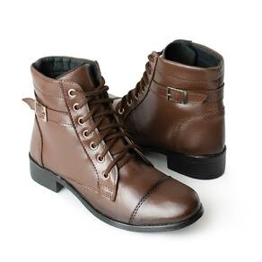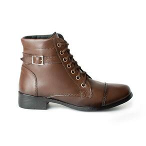 Coturno Feminino Bota Casual Dia a Dia Bico Redondo Fechamento Cadarço Detalhe Fivela Envio Rapido - 39 - Marrom