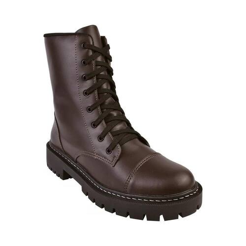 Coturno Feminino Bota Tratorado Salto Baixo Alto Cano Curto - 36 - Marrom Cacau