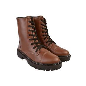 Coturno Feminino Bota Tratorado Salto Baixo Alto Cano Curto - 36 - Marrom