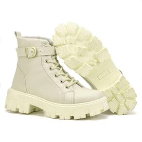 Coturno Feminino Casual com Amarração e Detalhe de Fivela Conforto e Estilo Urbano Marfim - 36 - Bege