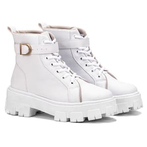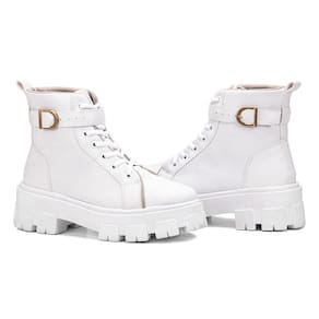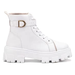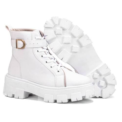 Coturno Feminino Casual com Amarração e Detalhe de Fivela Conforto e Estilo Urbano - 34 - Branco