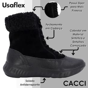 Seja para enfrentar os compromissos do dia com estilo ou para dar um toque fashion ao seu look, o Coturno Usaflex é uma escolha certeira. Agora é só escolher o seu e sentir na pele a diferença de caminhar com o conforto, a segurança e a elegância que só a Usaflex entrega.