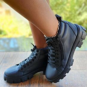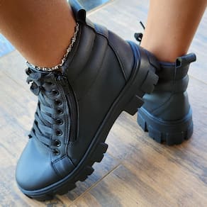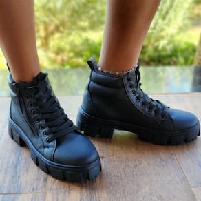 Bota Feminina com Solado tratorado Plataforma  Descubra o Charme do Conforto para seus treinos ou passeio com nosso coturno feminino   Características Principais: Cabedal: Sintético  Forro: Tecido Antibacteriano Palmilha: Confort Eva 4mm Sola: Borracha Antiderrapante Altura Da Sola: 5 Centrimetros  Metais: Antioxidante Ajuste: Cadarço Fios De Algodão E Zíper Reforçado Peso:  0.600g   Atenção na hora de escolher seu tamanho, o Tênis possui FORMA NORMAL, pedir o número que já está acostumado a usar, temos aqui a abaixo uma tabela aproximada de cm da palmilha para usarem como referência. TAMANHO DE PALMILHA 33 - 22.9 cm  34 - 23.2 cm  35 - 24.0 cm 36 - 24.5 cm 37 - 25.0 cm 38 - 26.0 cm 39 - 27.0 cm 40 - 27.5 cm   Não perca a chance de adicionar um toque de elegância e conforto ao seu guarda-roupa. Clique em "Comprar Agora" e experimente a combinação perfeita de estilo e comodidade com nossos Coturnos Femininos. Seu próximo par de sapatos favorito está a apenas um clique de distância!