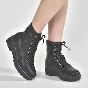 Marca: Via Marte Altura do solado: 4,5cm aproximadamente Altura do cano: 15cm aproximadamente Material externo: Napa/Sintético Material interno: Têxtil Material da palmilha: PU (Poliuretano) Material da sola: Emborrachado Acabamento: Colado/Costurado Ocasião de uso: Casual Modelo: 004-001 Referência: 004-001-01 Detalhes: Cadarço/Flatform/Bico Redondo.