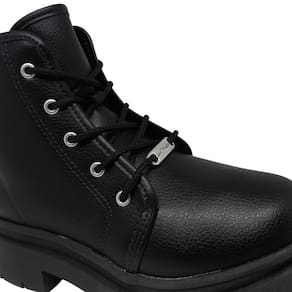 Confeccionado com cabedal em material sintético resistente, o modelo garante durabilidade e um toque agradável no uso. O fechamento em cadarço permite um ajuste personalizado e seguro, adaptando-se perfeitamente aos pés e facilitando o calce. Na parte traseira, o puxador funcional oferece praticidade na hora de calçar, reforçando o conforto e a autonomia.