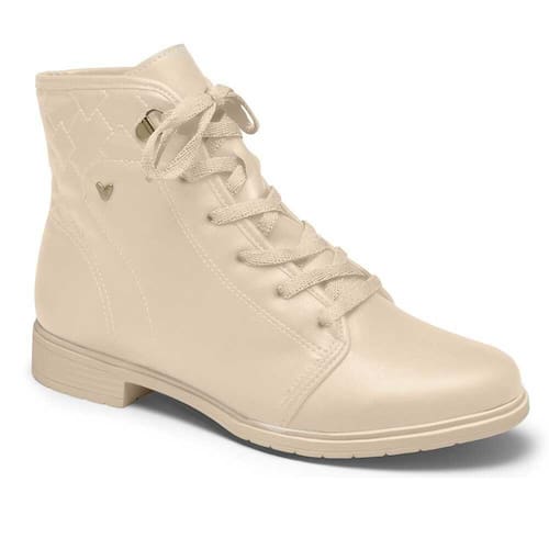 A bota possui salto baixo com 2,5 cm, que garante conforto durante todo o dia, e cadarço de amarrar para um ajuste perfeito. O material sintético de alta qualidade é leve e durável, e os detalhes em metal e as costuras no cano trazem um toque moderno e atemporal. Além disso, o modelo possui altura do cano de 13,5 cm e circunferência de 22 cm.