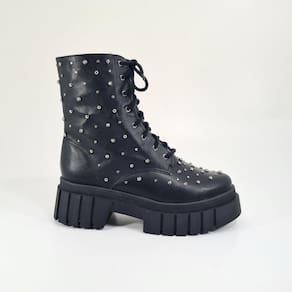 Coturno Feminino Dom&Amazona Numeração EspecialRef: AylaUm lindo coturno inspirado no mundo do rock, esse solado plataforma deixa ainda mais fashion esse modelo incrivel.Esse modelo possui bolinhas de metal e spikers em cores onix que é tipo um prata mais escuro.O solado possui 6cm de altura, possui cadarço para um ajuste perfeito e o calce fácil através do fecho lateral.Numeração especial disponivel do 41 ao 43