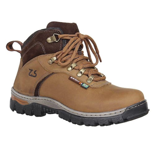 Coturno unissex Zebu fabricado em couro na cor Marrom, possui fechamento por cadarço, bico redondo, vira costurada e solado de borracha antiderrapante.