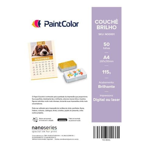 O Papel Couché é conhecido pela qualidade de impressão que proporciona. Sua superfície, totalmente lisa e brilhante, absorve menos tinta e imprime figuras coloridas muito mais intensas, tornando suas impressões ainda mais encantadoras. Pode ser utilizado para impressão de cartões de visita, panfletos, flyers, folders, cartazes, catálogos, livros, convites, papéis de presente, entre outros projetos. Características: Quantidade: 50 folhas Gramatura: 115g Tamanho: A4 Acabamento: Brilhante Garantia: Contra defeito de fabricação