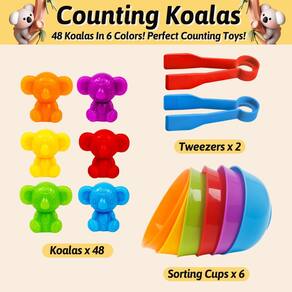 - Melhore as habilidades motoras finas: pegar, agarrar e soltar. As crianças podem não apenas classificar coalas de cores diferentes nas tigelas de cores correspondentes usando pinças ou mãos, ou podem empilhar tigelas em diferentes formas. Estes brinquedos de contagem estimulam o senso de desafio das crianças e desenvolvem suas habilidades práticas, promovem resistência e perseverança e melhoram as habilidades motoras finas, percepção de cores e capacidades de classificação.