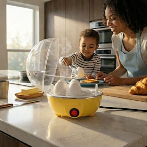 Com capacidade para cozinhar até 7 ovos simultaneamente,