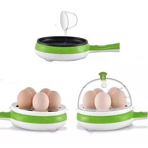 Cozedor de ovos elétrico com 2 andares, que também funciona como fritadeira e cozinhador a vapor para legumes. Ferve até 14 ovos em menos de 8 minutos. Possui desligamento automático e tampa transparente para visualização.Base antiderrapante