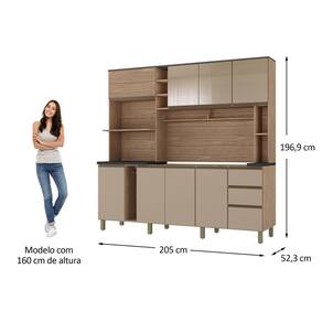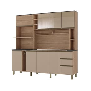Cozinha 205cm Mdf 15mm com Portas de Vidro Érica Champagne / Rosé - Marrom