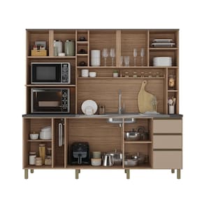 Preparada para Pia: O balcão inferior possui espaço projetado para instalação de cuba (pia), mantendo a harmonia visual.