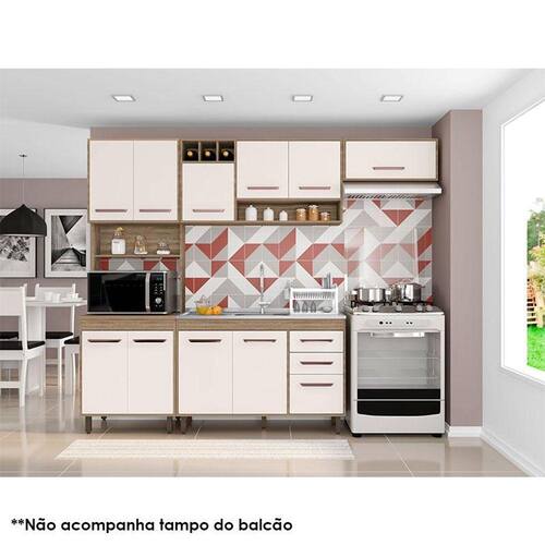 Cozinha 4 Peças Ambiente Barcelona com Balcão de Pia Carvalho OAK Off White – Poliman
