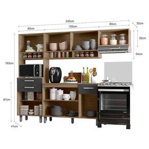Cozinha 3 Peças Siena Carvalho Grafite - Poliman