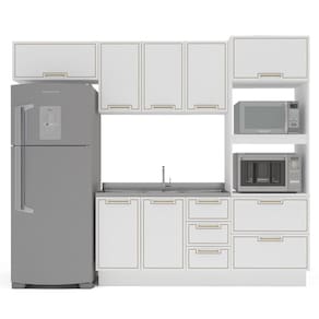 Cozinha 4 Peças Balcão 3 Gavetas 2 Portas Torre Quente Aéreo sem Tampo Amara Branco