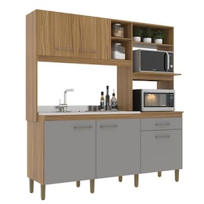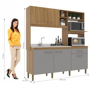 Cozinha compacta e prática da Decibal Móveis! Com seus 2m de altura e 1,88m de largura, tem tudo o que você precisa em um espaço compacto. Tem capacidade para dois fornos, com 5 portas e uma gaveta. Os puxadores tem cor levemente dourada e os nichos e prateleiras dão a organização que você precisa. Uma cozinha linda, funcional e com excelente qualidade. Um produto resistente que tem tudo o que você precisa.