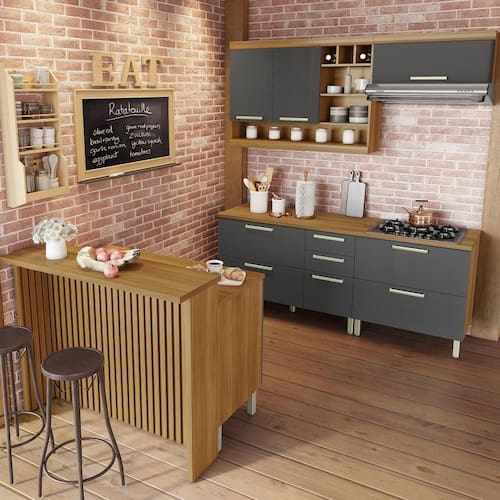 Com design contemporâneo inspirado em cozinhas planejadas, a Cozinha Burguesa une praticidade, tecnologia e durabilidade. Produzida com matérias-primas de alta qualidade, oferece módulos versáteis que permitem composições personalizadas. Possui puxadores em alumínio inox, molduras robustas, dobradiças SlowMotion, corrediças telescópicas de abertura total e amplos gavetões ergonômicos para máxima funcionalidade no dia a dia.