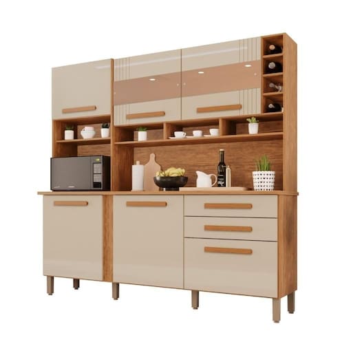 O Armário de Cozinha Ágata com espelho agrega charme e sofisticação ao ambiente, com amplo espaço e gavetas com corrediças telescópicas de abertura total, permitindo armazenar utensílios e organizar seu espaço com praticidade.